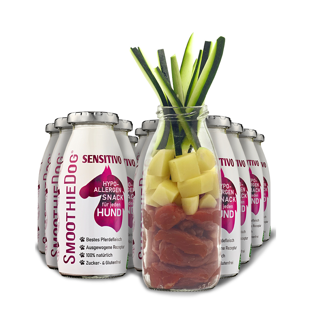 Dopřejte potěšení i psímu alergikovi nebo pejskovi s citlivým zažíváním. Benefity koňského masa jsou i pro jejich bříška hravě stravitelná. Proto ve smoothie najdete jen koňské maso, pastinák, cukety a pitnou vodu. Toť vše. Pro čtyřnohé kamarády s nadváhou nebo neschopné větší akce rozhodně doporučujeme (společně s odborníky) nízkotučné koní maso. Ale pochutnají si na něm i pejsci bez alergie či intolerance.