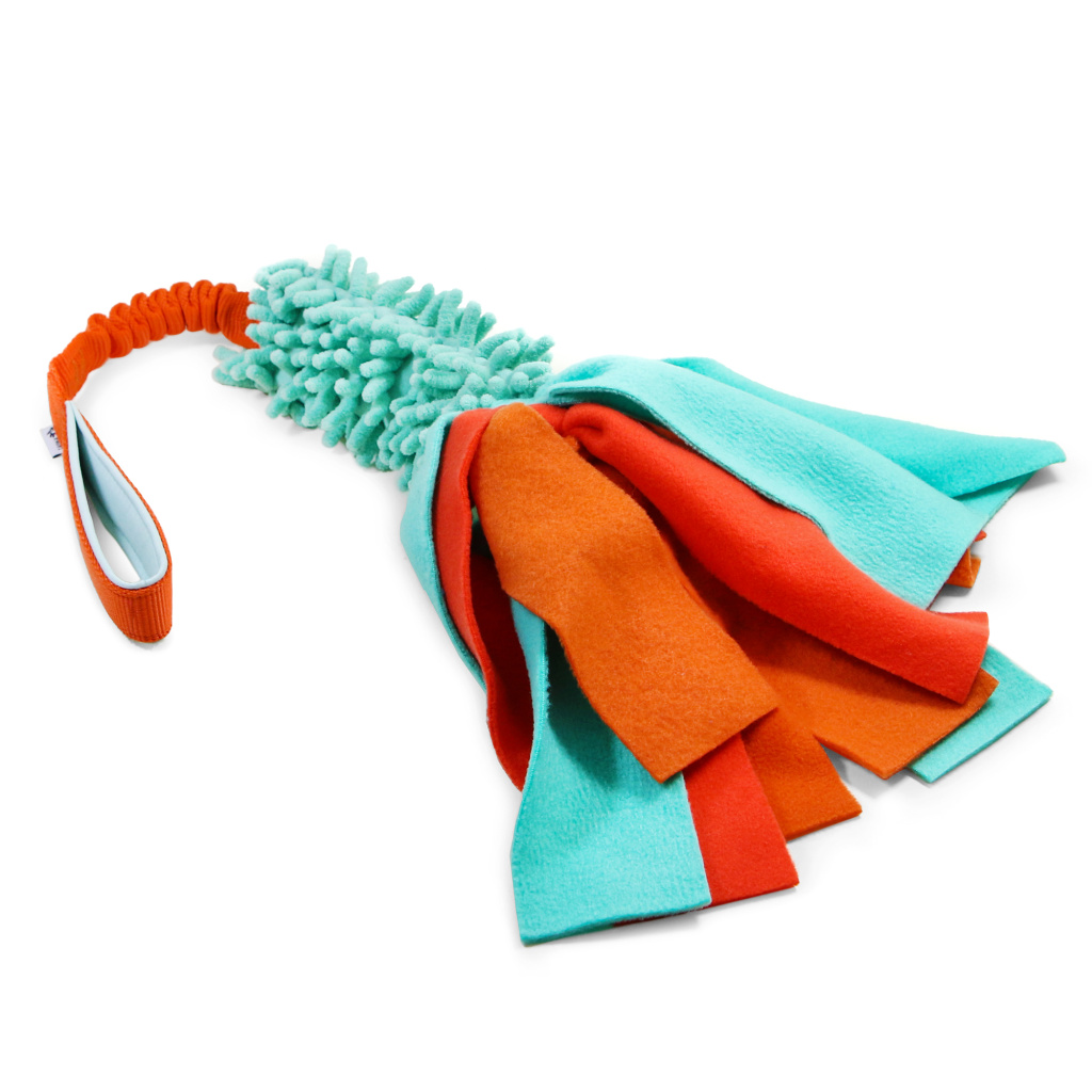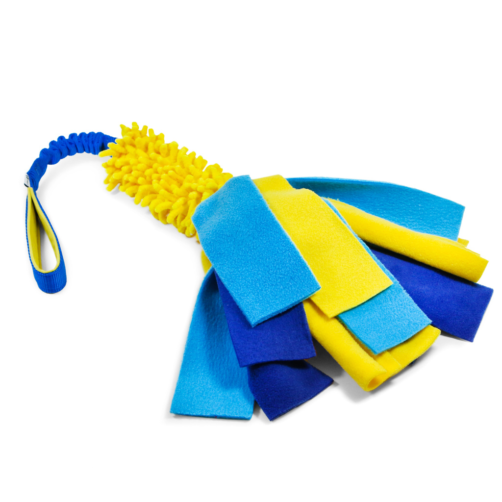Mop s dlouhou rukojetí, fleecovými střapci je skvělou hračkou, kterou můžete táhnout po zemi a nechat jí pronásledovat vaším pejskem. Bungee funguje jako tlumič nárazů, který usnadňuje tahání za vaše tělo a zároveň zvyšuje vzrušení z tahání vašeho psa.