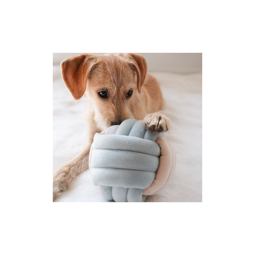 Neutrální, klidné barvy a moderní tvar dělají z uzlu Snuffle Knot typickou hračku pro psy.