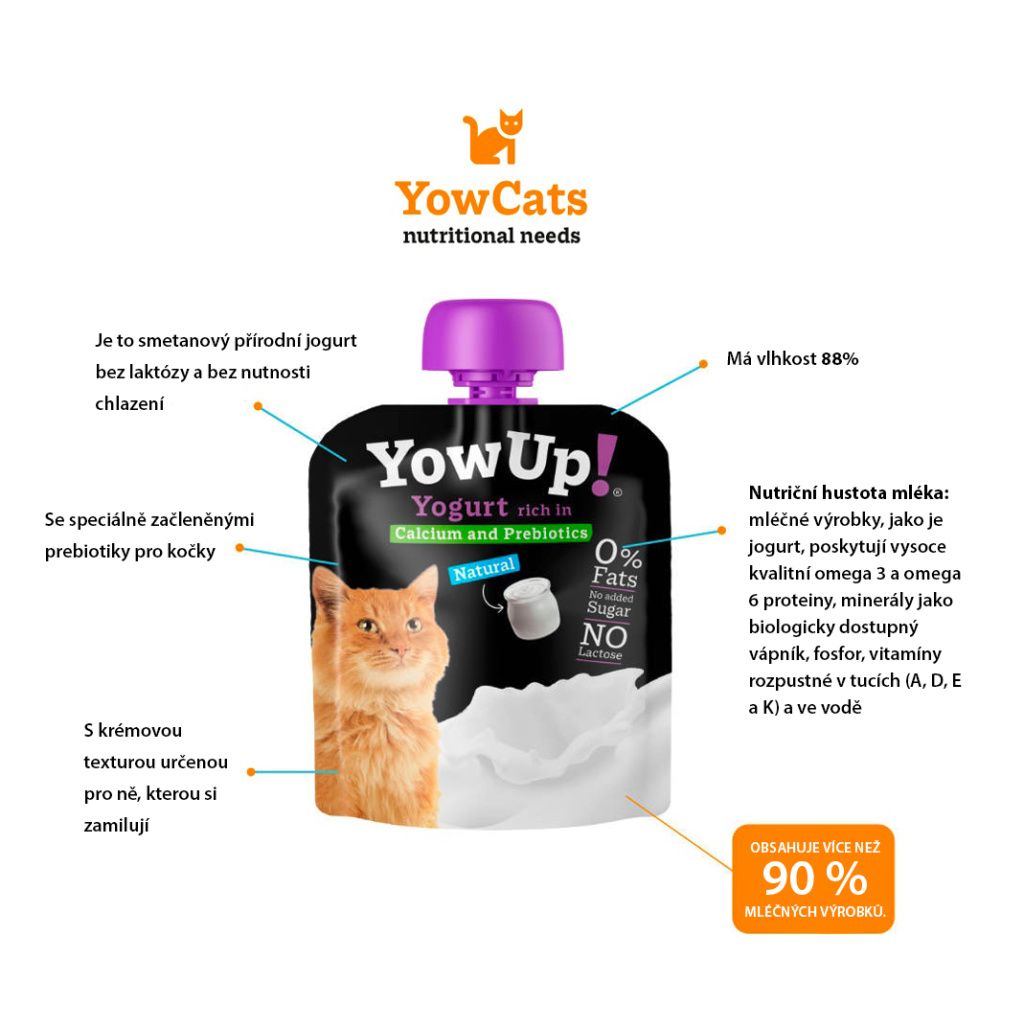 Mléčný tuk je přirozeným zdrojem bioaktivních sloučenin (kyselina máselná, konjugovaná kyselina linolová (CLA), fosfolipidy a sfingolipidy), ale hlavní zdroj tuku a bílkovin u psů a koček pochází z masa, ryb nebo suchého krmiva Jogurt Musí být 0% TUKY , protože jako základní doplněk stravy pro svůj vývoj by neměl přidávat mnoho kalorií k běžnému dennímu příjmu.