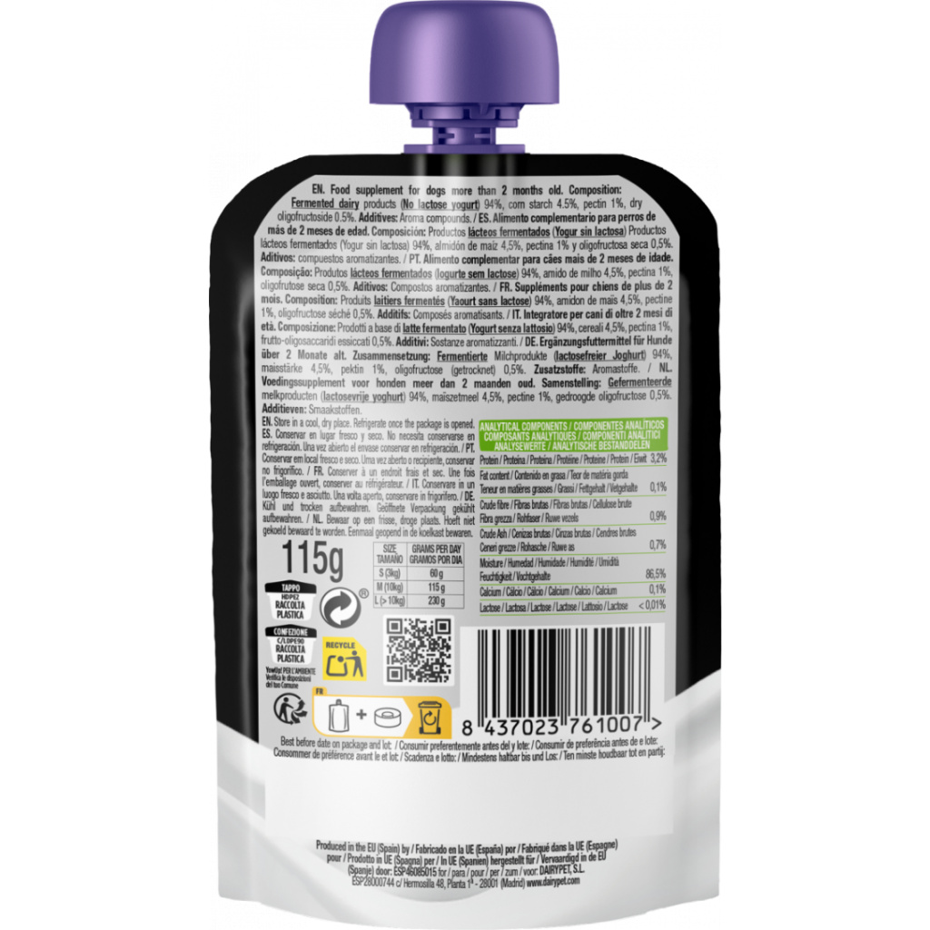 Mléčný tuk je přirozeným zdrojem bioaktivních sloučenin (kyselina máselná, konjugovaná kyselina linolová (CLA), fosfolipidy a sfingolipidy), ale hlavní zdroj tuku a bílkovin u psů a koček pochází z masa, ryb nebo suchého krmiva Jogurt Musí být 0% TUKY , protože jako základní doplněk stravy pro svůj vývoj by neměl přidávat mnoho kalorií k běžnému dennímu příjmu.