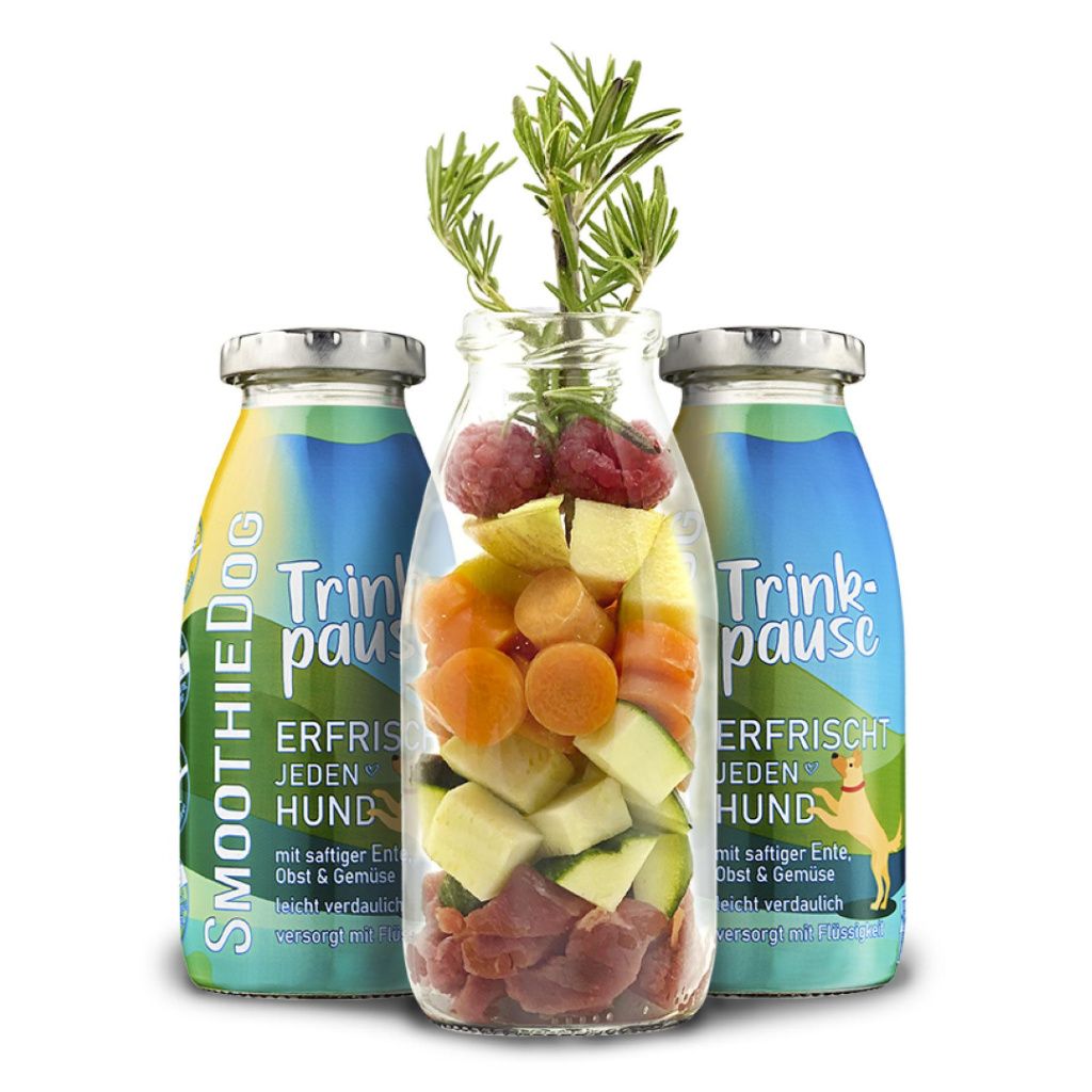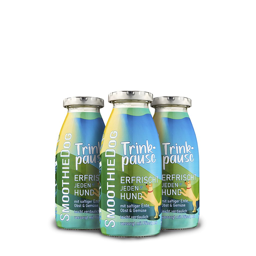 Chcete pejska přimět dodržovat pitný režim? Vyzkoušejte k tomu smoothie s výstižným názvem Přestávka na pití. Neodolatelný drink z kachní svaloviny je zárukou přísunu tekutin pro roztržitá štěňátka i unavené psí seniory. Přibalte SmoothieDog do auta, do hor nebo k moři v jakémkoliv ročním období. Váš pejsek načerpá energii a doplní tekutiny tím nejlahodnějším způsobem!