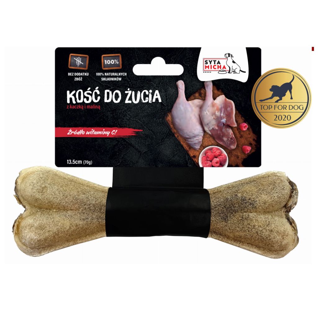 Kachní žvýkací kostička s malinami je psí dobrota vyrobená z nezpracovaných surovin. Hlavními leadery zdravého složení jsou hovězí kůže, kachní maso a maliny. Složení surovin je vybíráno s důrazem na to, aby pochoutka posilovala imunitní systém a bránila rozvoji mnoha onemocnění, která na psy číhají.