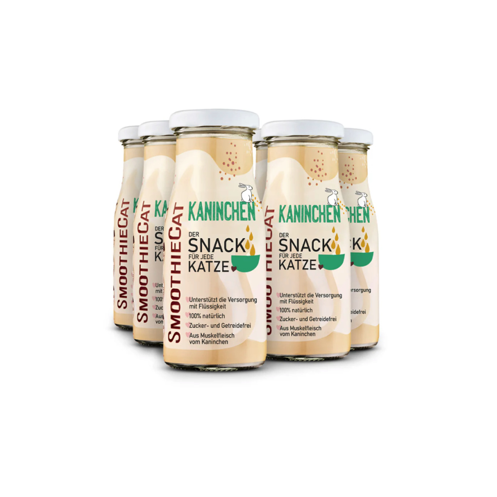 Nový recept SmoothieCat Králík, vyrobený z čistého svalového masa, je ideální pro citlivé nebo alergické kočky – je snadno stravitelná, má vysoký obsah bílkovin a je druhově vhodná. Pastinák podporuje trávení, má protizánětlivé vlastnosti a dodává nezbytné vitamíny pro zdravou kůži, srst a imunitní systém. Ideální jako svačina, poleva nebo pro hydrataci!