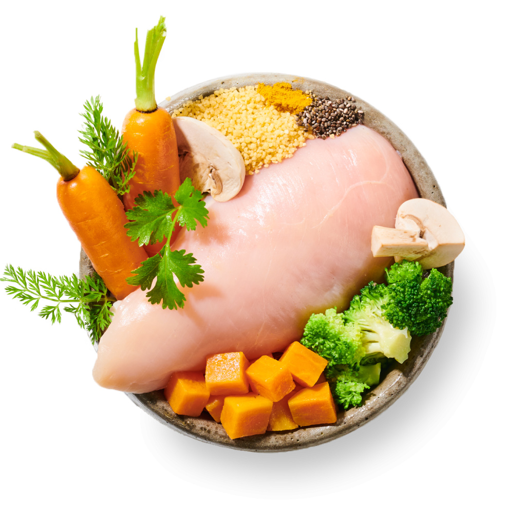 Naše skutečné celé ingredience pocházejí od místních dodavatelů, kteří sdílejí naše hodnoty. Jídla se vaří na objednávku v naší kuchyni schválené veterinární správou jen několik hodin před příjezdem k vašim dveřím.