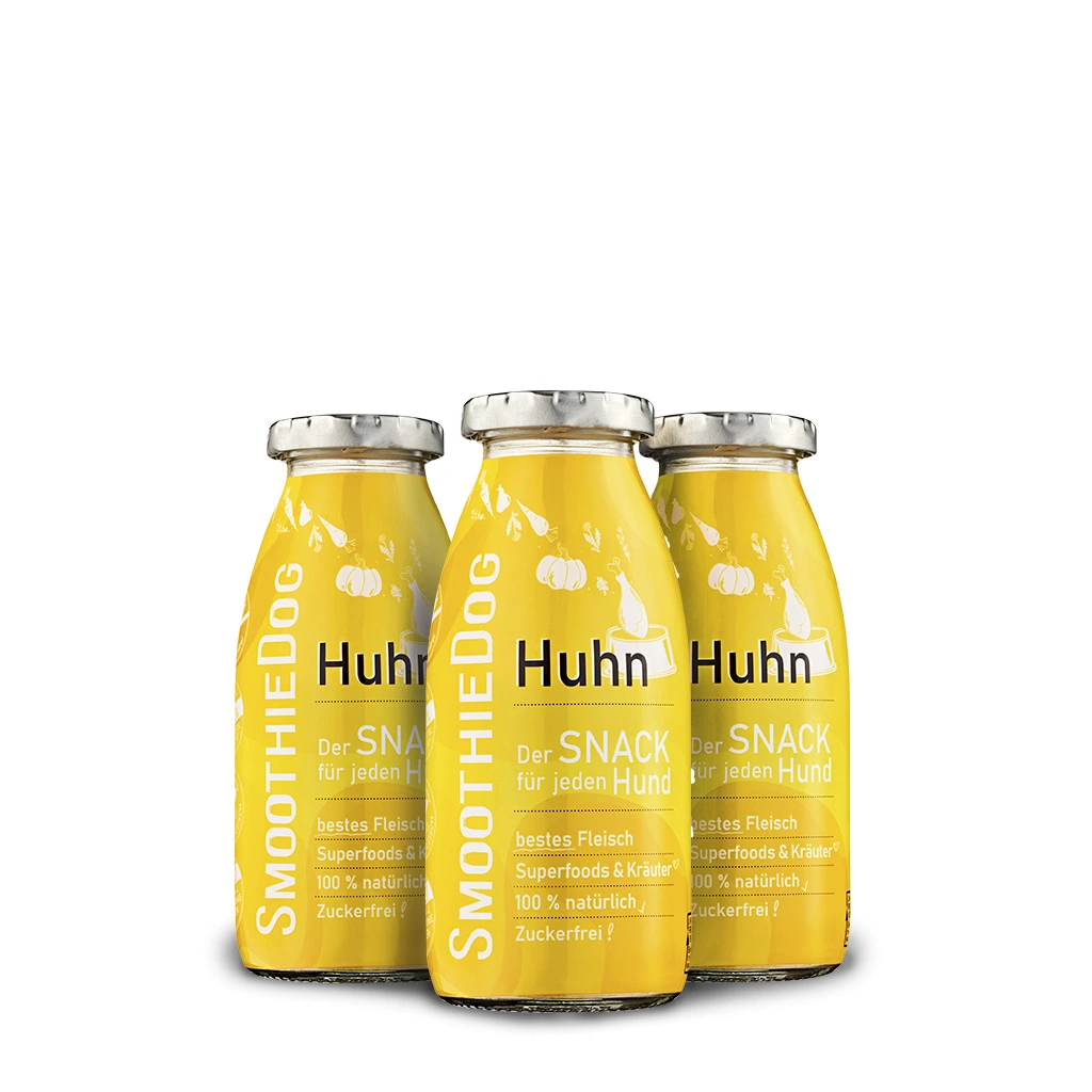 Odrůdy zeleniny pastinák, dýně a mrkev tvoří lví podíl na odrůdě SmoothieDog "CHICKEN". Zejména u kuřecího masa dbáme na dobrý odchov zvířat, který voní a chutná každému psovi. Mrkev má pozitivní vliv na srážlivost krve, může pomoci při průjmu u psů, posiluje imunitní systém a obranyschopnost psa a podporuje krásnou lesklou srst. Čerstvá hruška poskytuje na vitamíny bohatou a lahodnou sladkost. Zlaté lněné semínko podporuje trávení ve střevě psa. Přirozeným barvivem žlutého psího smoothie je superpotravina kurkuma s antibakteriálními účinky. Barevná směs bylinek tymiánu, pampelišky a oregana tuto odrůdu dokonale završuje - pro každého psa od štěněte po seniora.