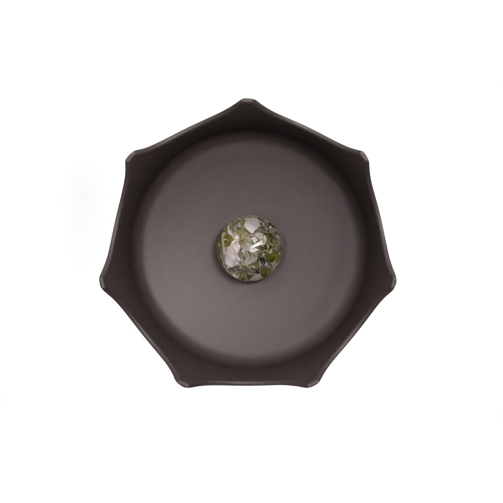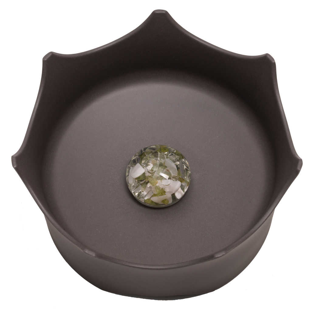 Miska CrownJuwel je robusní a pevná (70% bambus, kukuřičný škrob, dřevěná vlákna, 30% syntetická pryskyřice), na dně s uchyceným skleněným modulem s drahokamy pro zcela přírodní revitalizaci pitné vody. Je vyrobená z pevného borosilikátového skla zbaveného zatěžujících prvků.