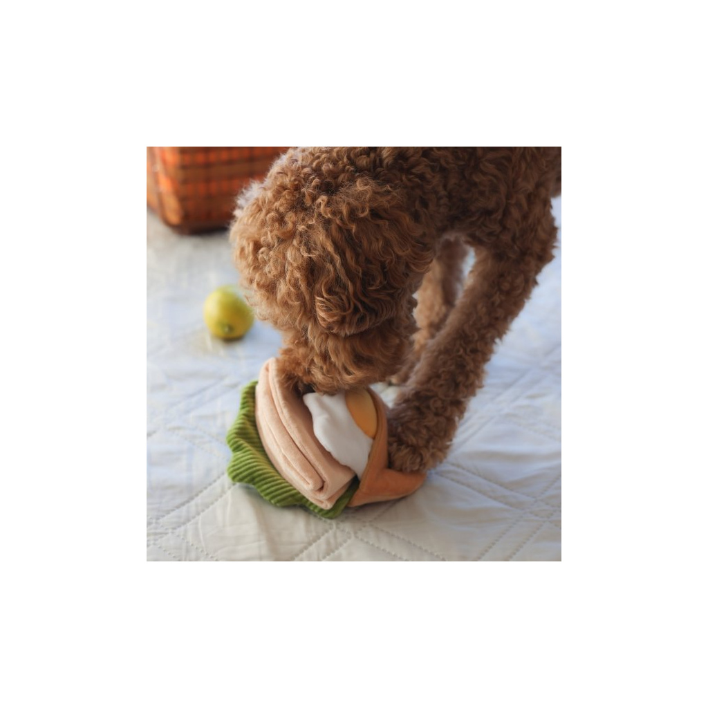 Není to jen tak obyčejná hračka – je to interaktivní zážitek z vůně a smyslového tréninku v jednom. Uvnitř najdete tři odnímatelné díly (vejce, šunku a hlávkový salát), které si můžete uspořádat dle libosti, a ve dvou z nich jsou ukryté pamlsky.