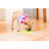 LickiMat Wobble je miska s gumovými bodlinkami uvnitř. Můžeme ji natřít arašídovou pastou, rybičkami z konzervy i mletým masem, nejideálnější je pro tekuté záležitosti, obzvláště pro jejich zamražení. Zkuste na sebe udělat několik vrstev, aby se pejsek s každým dalším líznutím přiblížil novému chuťovému zážitku a vy jste měli několik hodin klid.