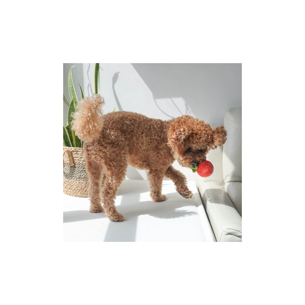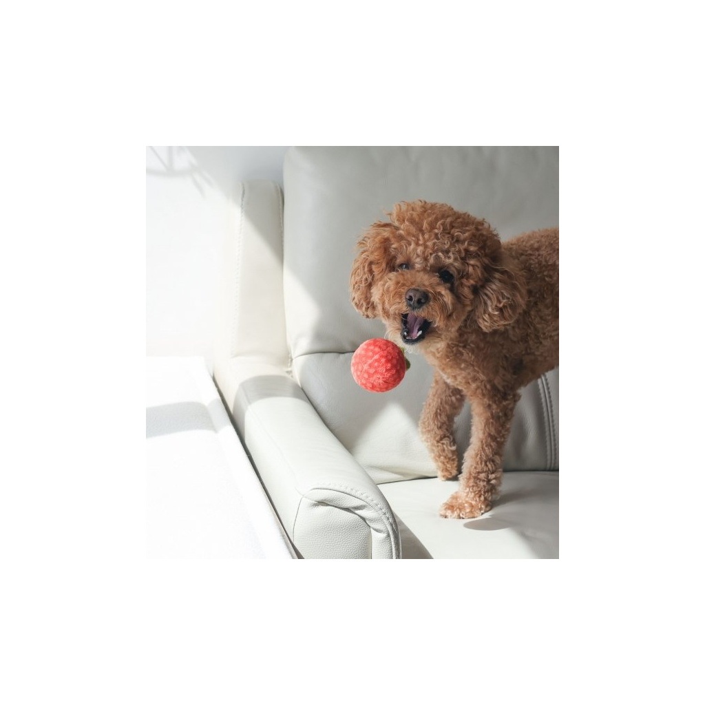 Měkké, plyšové rajče je samostatná hračka, která vrže, skáče a lze ji také použít jako pamlsek .