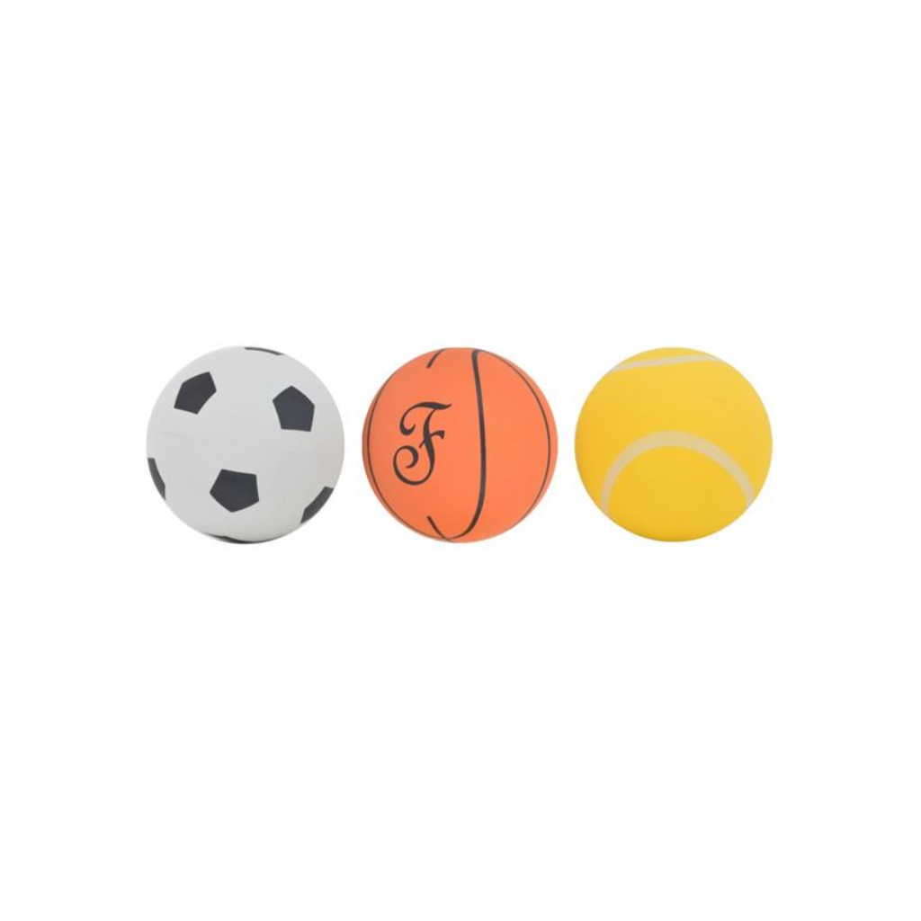 - Vizuální variabilita: Sada obsahuje tři míčky s různými sportovními motivy (tenis, fotbal, basketbal). Tato pestrost udržuje pozornost psa a usnadňuje majiteli rozlišení míčků při hře.