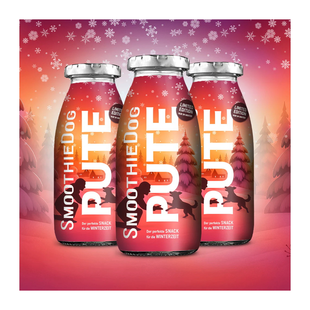 Limitovaná zimní edice divokého krocaního smoothie v sobě má všechny ingredience k tomu, aby doplnila pejskům vitamíny i v chladných a sychravých dnech. Do lahvičky se vešla voňavá svalovina z krocana, sladká mrkev, vydatná dýně a pastinák i šťavnatá jablka.