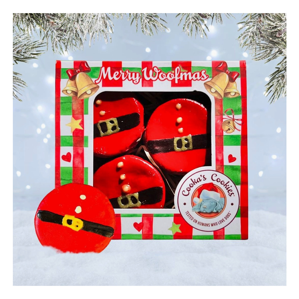 Balení obsahuje 3 makronky s bříškem Santa Clause