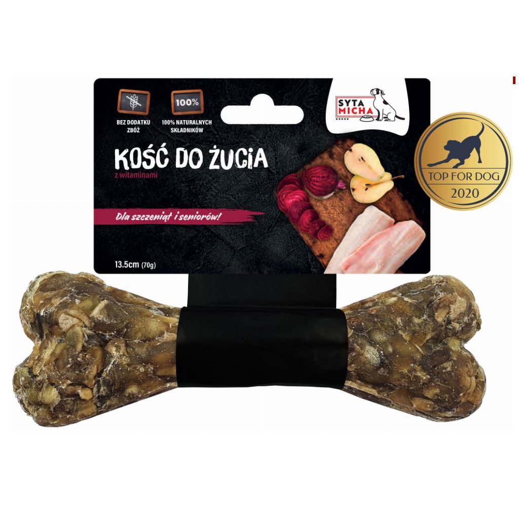 Žvýkací kostička pro štěně od značky Syta Micha patří do skupiny funkčních žvýkacích kostí. Kromě toho, že je pro pejska dobrým zdrojem zábavy, podporuje i jeho přirozené žvýkací instinkty a mechanicky čistí zuby a masíruje dásně, což nejvíce ocení štěňata s prořezávajícími se zuby. Navenek je kost z chemicky neupravené hovězí kůže a uvnitř má zdravou náplň ze superpotravin jako je tresčí kůže nebo červená řepa. Postarejte se pejskovi o naplnění jeho přirozené potřeby kousat, olizovat a žužlat, a váš nábytek i boty zůstanou v bezpečí!